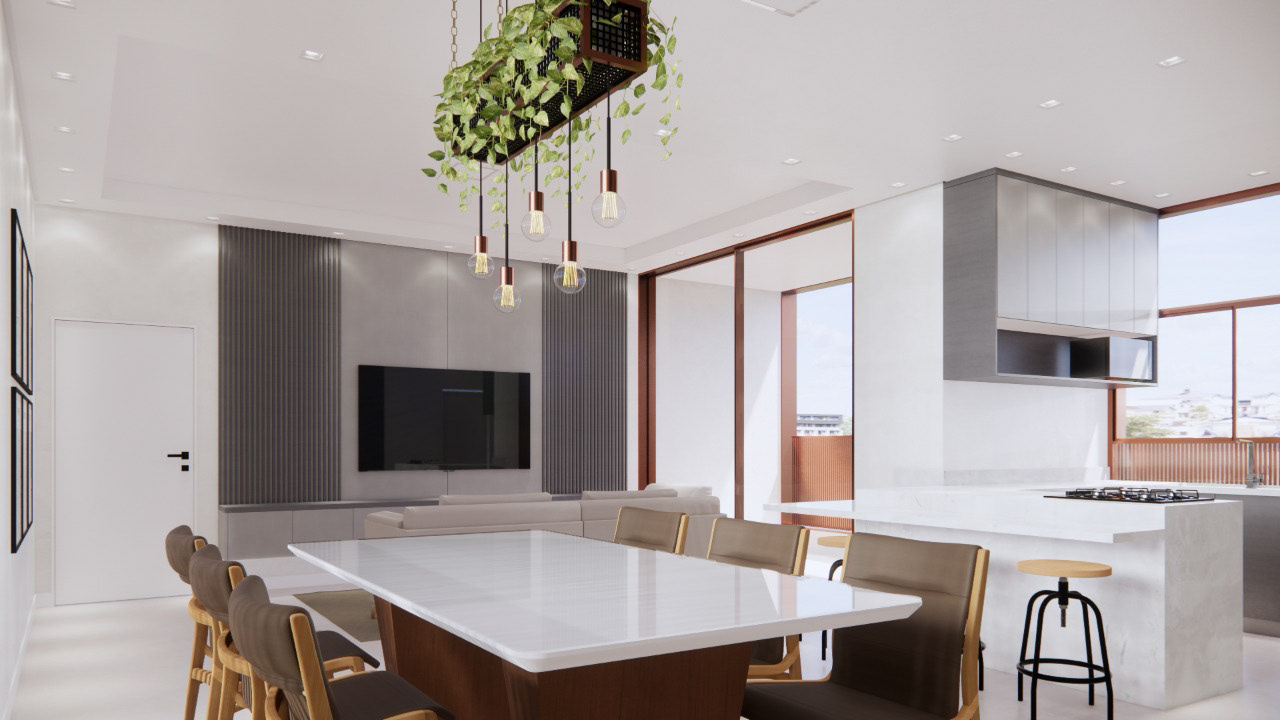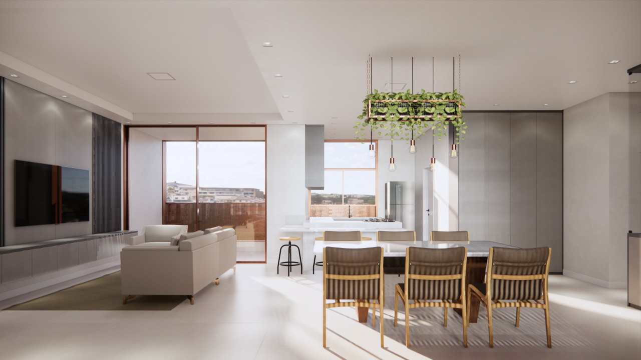 Ordenar a distribuição de diferentes tipologias num único pavimento foi um desafio estimulante. As unidades foram projetadas modularmente a partir de uma grelha básica de 1,20m. Foram cinco tipos de apartamentos: os menores de 90m² em versões de único pavimento e dúplex (os dois tipos com duas suítes); 115m² com três suítes; 120m² em duas versões - três suítes ou uma suíte e dois dormitórios; e, por fim, a maior unidade com 160m² dispondo de três suítes e um pequeno cômodo multiuso além dos programas das salas de estar, jantar, cozinha, lavanderia, lavabo e terraço com churrasqueira, comum à todas unidades.