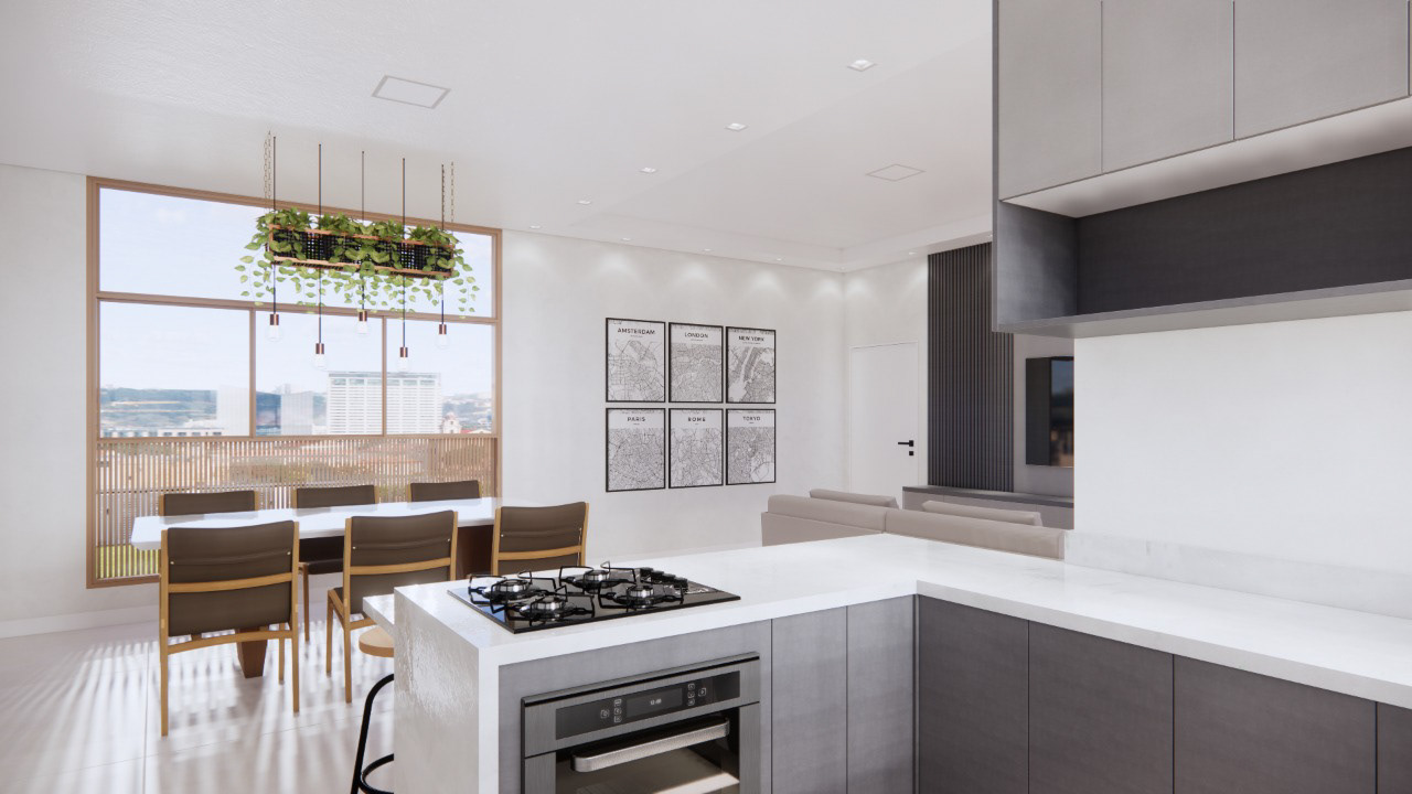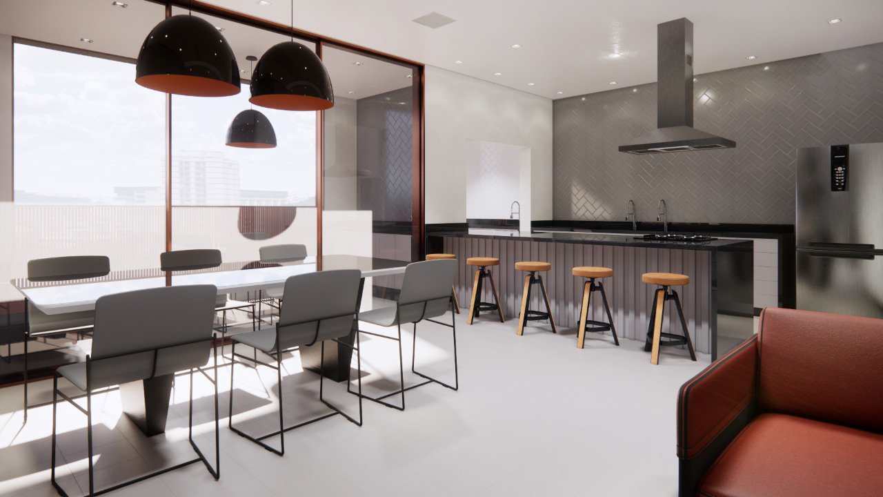 A área de festas se localiza no mezanino – destacando o uso e atentando-se ao movimento que tal programa sugere de visitantes. A área de recreação conta com um amplo espaço coberto e descoberto, adequado à atividades externas e de convívio e permanência devidamente ensolaradas. Todas as vagas dos veículos são cobertas, ocupando dois subsolos.